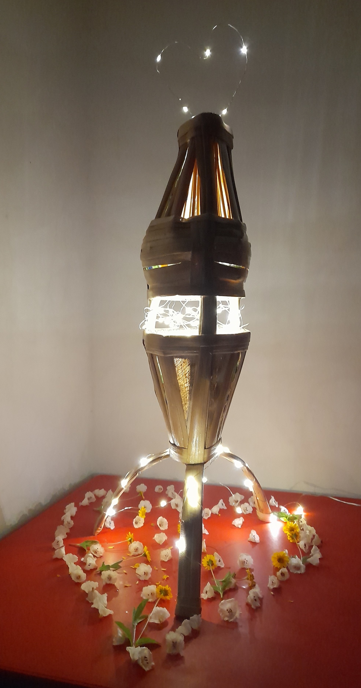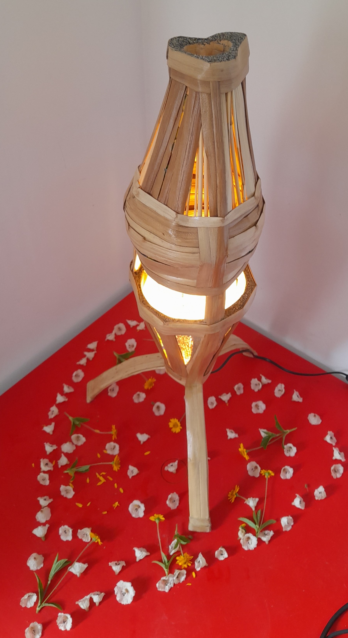 Lampe décembre 2025, lampe n°12, style « Bambou Coco Cœur de l’Univers », l’unique et grand modèle, Stéphanie & Benoît dans l’Univers.
