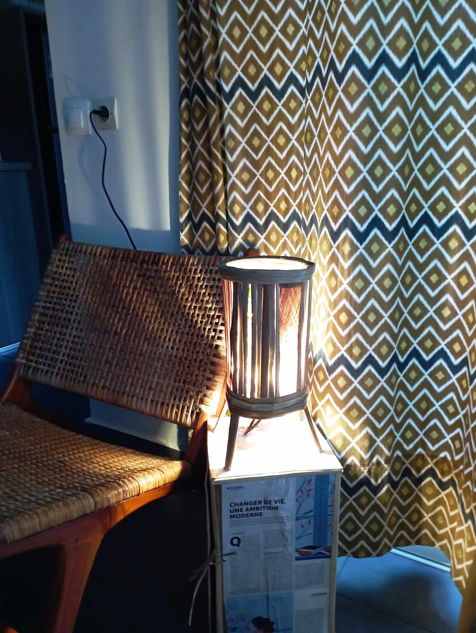 LA LAMPE JANIQUE Lampe chaleureuse de taille moyenne. Elle alterne colonnes de verres polis, feuilles de vacoa et tissu coco. Lampe précédente Lampe suivante Laisser un commentaire Annuler la réponseVotre adresse e-mail ne sera pas publiée. Les champs obligatoires sont indiqués avec *Écrivez ici…Name* Email* Site Internet Enregistrer mon nom, mon e-mail et mon site dans le navigateur pour mon prochain commentaire. Δ PARTAGEZ SUR LES RÉSEAUX : Articles similaires La fin du début. Exposition… Collision… Accepter… Read More Vincent et Gwénaëlle Style Bamboucoco du début des années 2000… Lampe offerte à Vincent et Gwénaëlle, la Réunion est petite 🙂 Read More